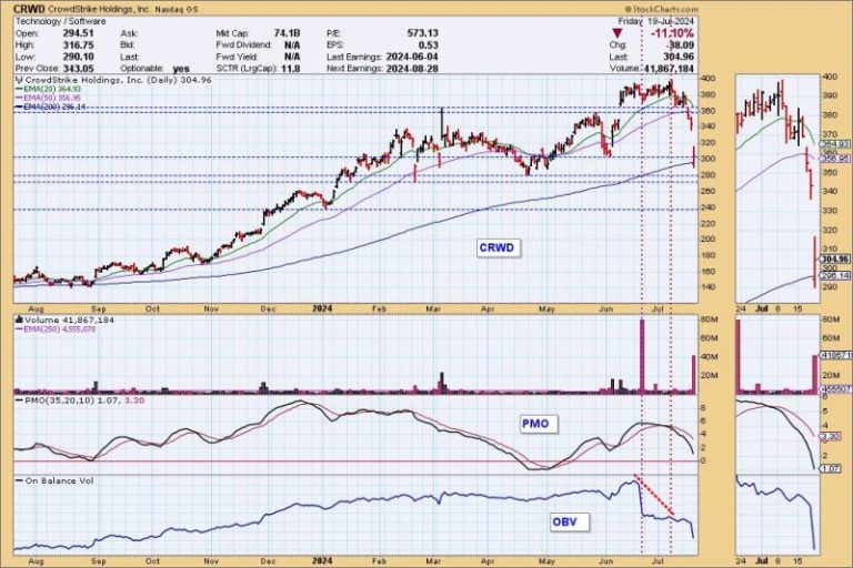 OBV is a momentum indicator that captures buying and selling pressure based on trading volume. By measuring the flow of volume in and out of a security, OBV aims to provide insights into potential price movements. In the case of CrowdStrike, a notable correlation emerges between the OBV readings and the unprecedented IT outage.